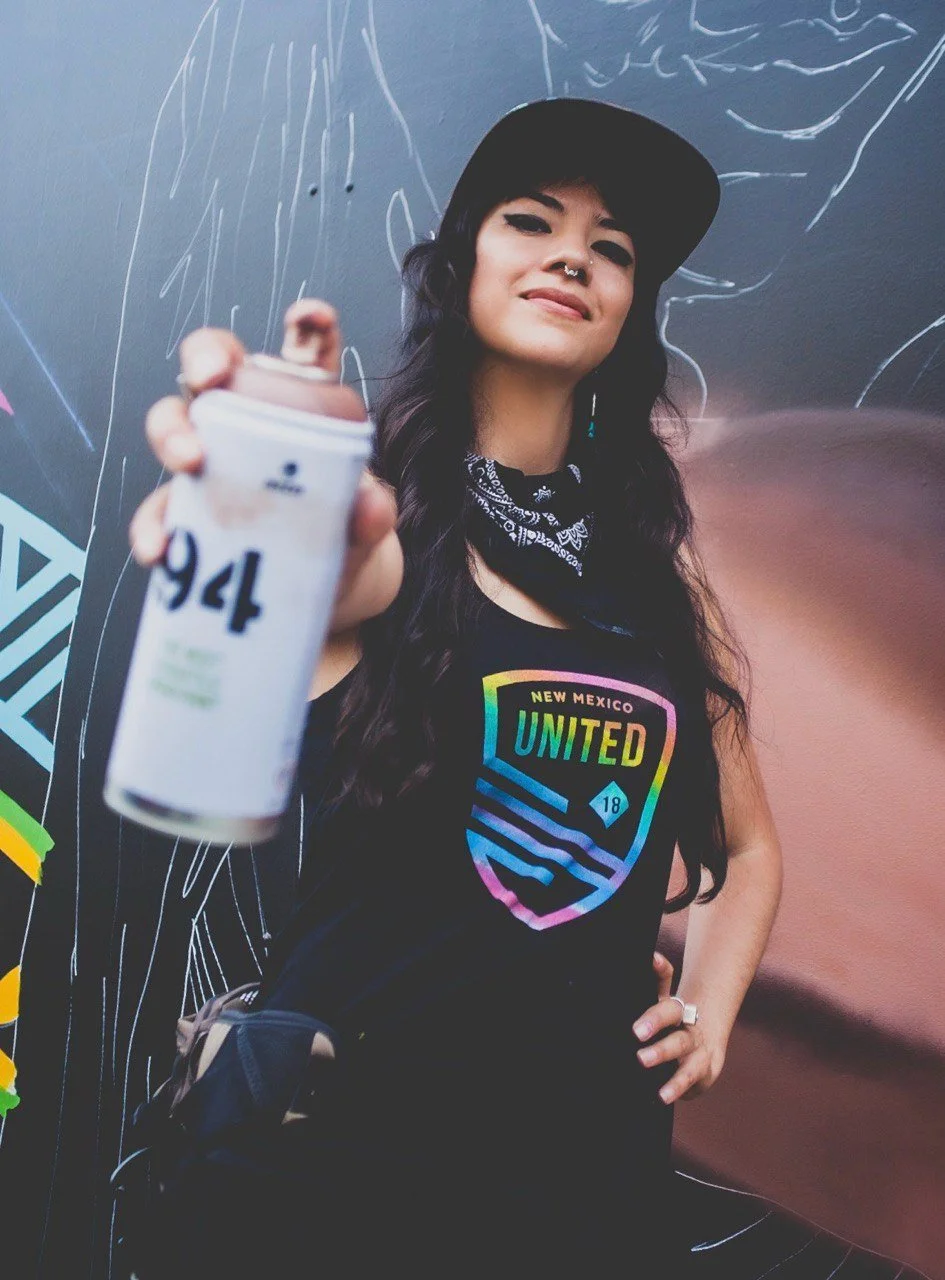 Based in her hometown of Taos, NM, Herrera creates her powerful, photorealistic oil paintings, while traveling often to create public murals nationally and internationally. Her acclaimed work blends technical mastery with storytelling, weaving layers of resilience, representation and culture into every composition. Her impactful murals, created from spray paint, are rich in symbolism, often featuring local flora, and portraiture to reflect the histories and identities of the communities she serves.